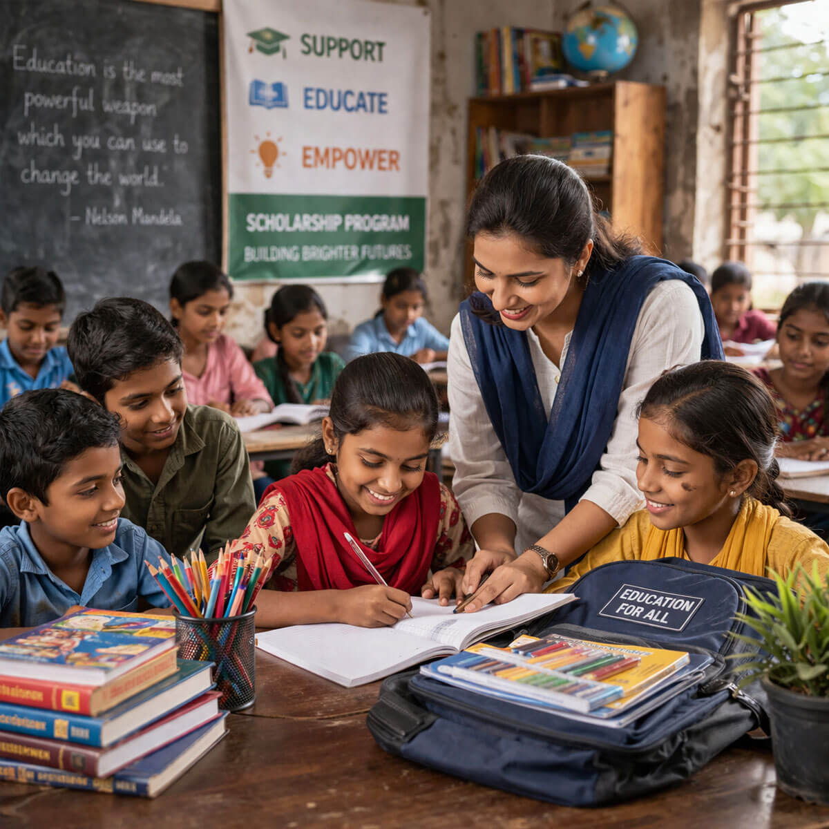 ✔ Scholarships & learning materials for underprivileged students