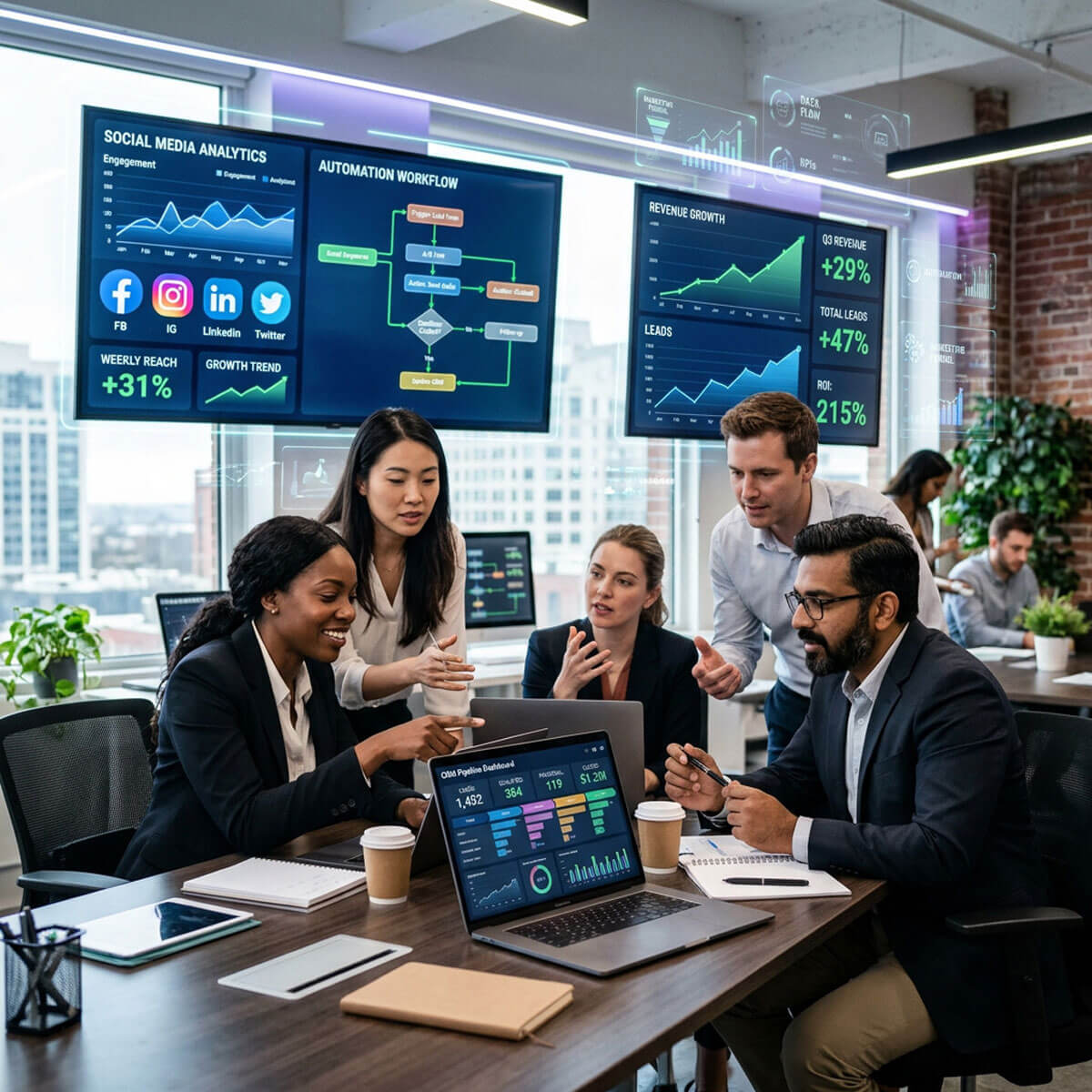 We offer comprehensive digital marketing and business automation solutions, including CRM systems, social media marketing, and process automation. Our goal is to help businesses increase visibility, manage operations efficiently, engage customers effectively, and achieve measurable growth in the competitive digital landscape.