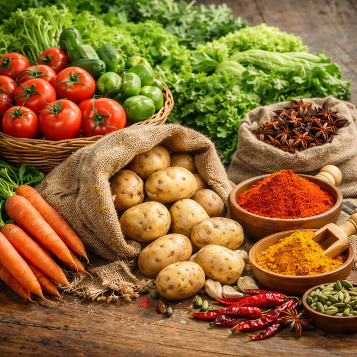 We export a wide range of agricultural and food products including fresh vegetables, potatoes, and spices to international markets. Our process ensures proper sourcing, grading, hygiene, and export-standard packaging. We strictly follow global food safety regulations and maintain freshness and quality through efficient storage, preservation, and logistics systems to ensure timely and reliable delivery.